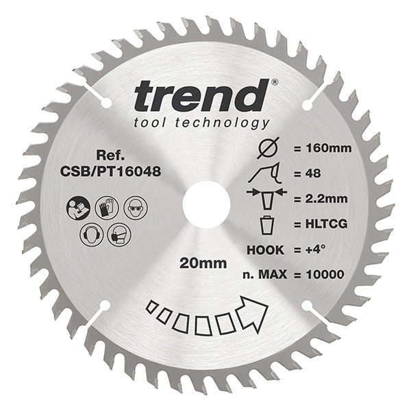 Trend Craft Super Fine Finish Plunge Saw Blade 160mm Diameter x 48 Teeth x 20mm Bore x 2.2 Kerf is a range of tungsten carbide-tipped saw blades for cutting laminated and resin-based materials. For use in circular, plunge, and table saws, Trend Laminate & HPL blades deliver precise, clean cuts. Ideal for laminated and veneered panels, laminated chipboard worktops, and compact laminate.