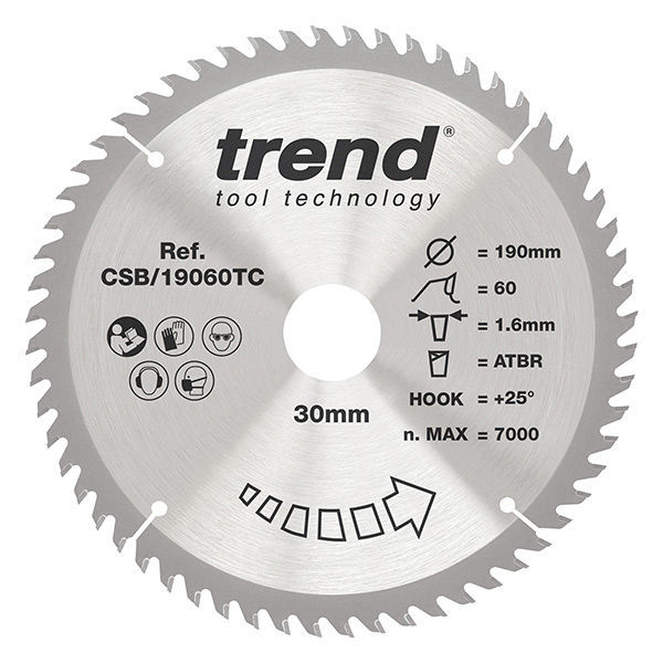 Trend Craft Thin Kerf Saw Blade 190mm Diameter x 60 Teeth x 30mm Bore x 1.6mm Kerf is a range of thin kerf tungsten carbide tipped combination blades for wood and wood-based materials. For use in cordless circular, plunge, and table saws, and available in a range of finishes. Ideal for ripping and trimming softwood, hardwood, plywood, MDF, and hardboard.